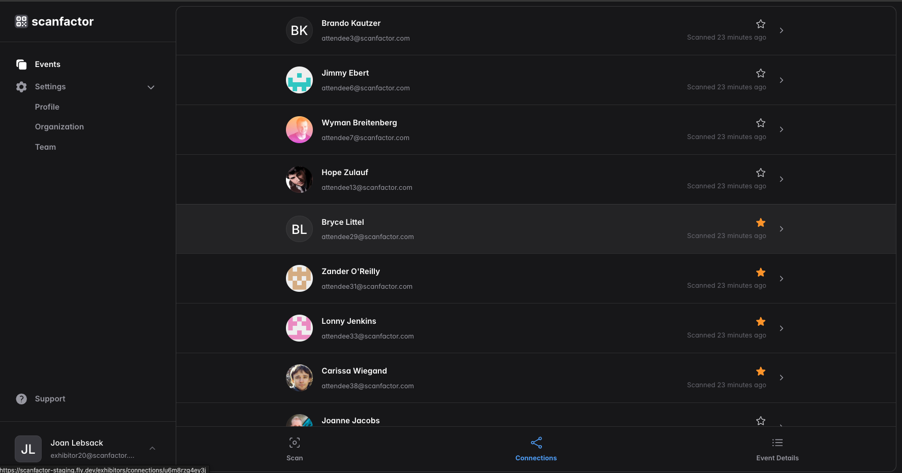 Upon scanning a candidate's QR code with ScanFactor, you gain instant access to the information they've uploaded to their profile. Plus, any new additions they make are visible to you in real-time. Additionally, you can mark individuals as favorites and jot down notes about your interactions with them.